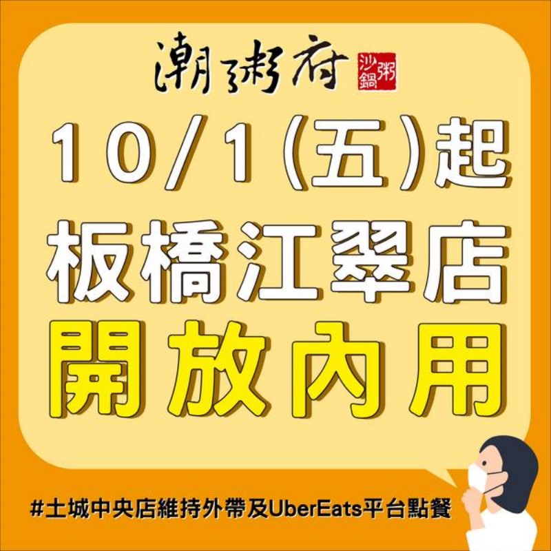 10/1(五)起板橋江翠店 #開放內用及電話訂位囉